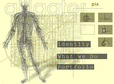 Welcome to Alligator Pix multimedia studio version française Learn who we are and what we do. Check out the latest news about us, browse ou portfolio. Javascript, VRML and other demos are available in the lab. Surf the links. Contact us.